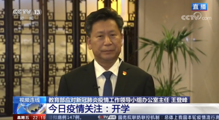 在回答开学先后顺序的问题上,王登峰表示,高三和初三先开学是我们的基本共识,在教育部发布的几次通知里面都明确提到过,在保障安全的前提下,应该是高三和初三先开学,因为他们是毕业班,高三的同学要准备高考,初三的同学要准备中考,他们更需要尽快地回到学校。