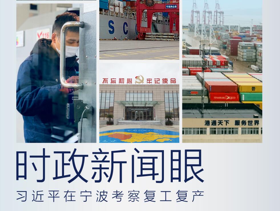 在宁波舟山港,习近平实地了解港口复工复产情况。在疫情冲击之下,宁波舟山港今年前2个月累计完成货物吞吐量1.63亿吨,为去年同期的98%以上;完成集装箱吞吐量406万标准箱,恢复到去年同期的近九成。