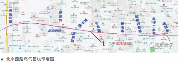 作为南京市区重要干道,北京西路两侧遍布省级机关、学校和居民小区。道路沿线燃气管道始建于上世纪80年代,老旧的铸铁管道在长年使用后强度下降,部分接口密封圈出现老化,存在一定的安全隐患。
