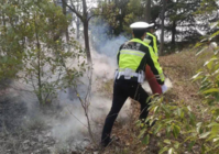 原来,4月1日下午2时许,灌云县陆庄高架桥下的杂草丛突然起火。火情就是警情!正在附近300米远的查报站执勤的交警大队民警贺大学带领队员迅速拿出警车上的灭火器,一路狂奔到现场。