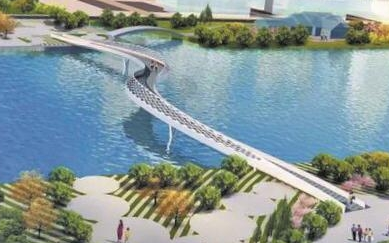 一条“S”形人行桥将跨越宜兴市区大溪河,今年底建成。桥梁位于东氿大桥和梅林大桥之间,连接青墩公园和梅林地块。