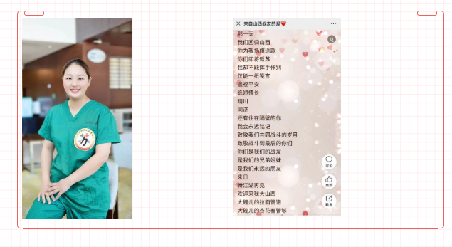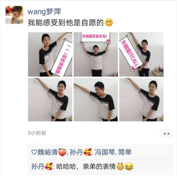 武汉期间,王梦萍和山西支援队伍在同一个驻地、同一家医院。山西队队员离开武汉的那一天,江苏队队员唱着歌,到酒店门口送行。得知江苏队即将返程,山西队员遗憾无法现场送行,特地写下送别诗,遥祝平安。“还记得送别山西战友,转眼,我们也要离开了。”王梦萍在朋友圈晒出这份来自山西“战友”的爱。当天,让王梦萍感动的事还不止这一件。王梦萍说,在武汉的最后一天,感动好几回了。14岁的弟弟,得知她要回家后,花式相迎。