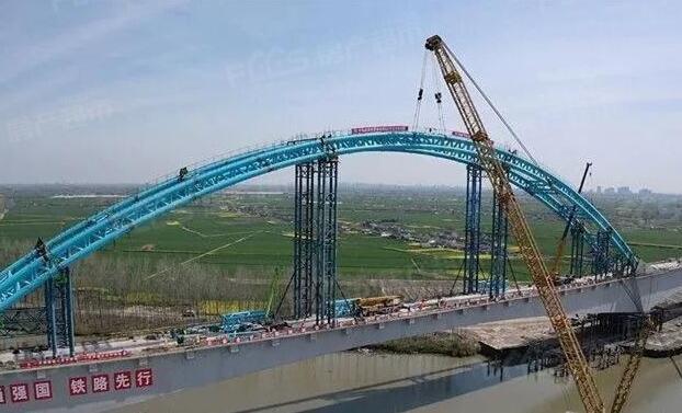 盐通铁路跨通榆河228米连续梁拱式桥是全线最大的控制性工程,也是我国时速350公里高铁建筑史上跨度最大混凝土连续梁拱桥。截至目前,施工单位正抓工期,抢进度,确保6月底具备铺轨条件。