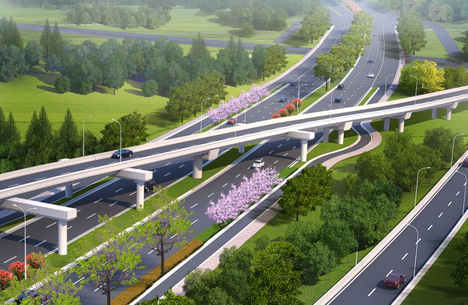 ▲跨薛典路口段桥梁 透视图