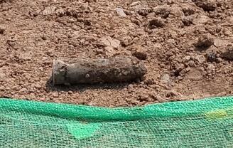 4月12日,江北一工地正常施工时,突然从地里挖出一枚“铁疙瘩”,施工工人经过仔细观察,越看越觉得这枚“铁疙瘩”像一枚炮弹,赶紧报警求助警方处置。