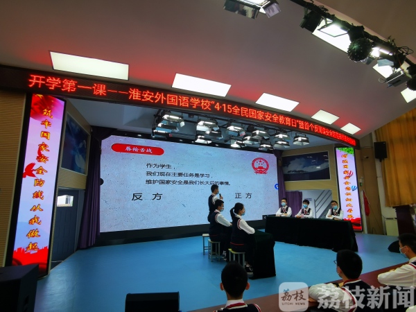 什么是国家安全?哪些行为属于间谍行为……在淮安外国语学校,同学们通过情景剧表演、辩论、观看案例视频等方式,在寓教于乐中,共同学习新出台的《江苏省反间谍安全防范工作条例》,了解国防安全知识。“国家安全,包括军事,科技,文化等各个方面的领域,可以说是深入到了生活的方方面面。那么作为一个中学生首当其冲的,我们就是要以身作则,不登陆一些非法网站,不给那些不法分子以可乘之机。其次,我们要努力学习增长自己的文化知识,这样才能在以后,作为一个祖国的栋梁之材,为建设一个和平稳定繁荣的祖国,贡献自己的一份力量。”淮安外国语学校初二(9)班学生杜宣烨说。