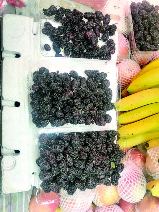 “桑葚十块钱一斤,今天刚从大棚送来的。”南京路菜场的一名水果摊主朱先生告诉记者,桑葚是刚上市的新鲜货,“这两天很受欢迎。”由于还未到桑葚成熟时节,现在的桑葚基本是大棚种植的。但其不易保存,顾客一般买的量不多,一天大约能卖出二三十斤。“孙子喜欢吃桑葚,酸酸甜甜的,吃起来还省事,用水泡一会就行了。”正在水果摊前挑选桑葚的王阿姨说,每年桑葚上市,她都会来买些。