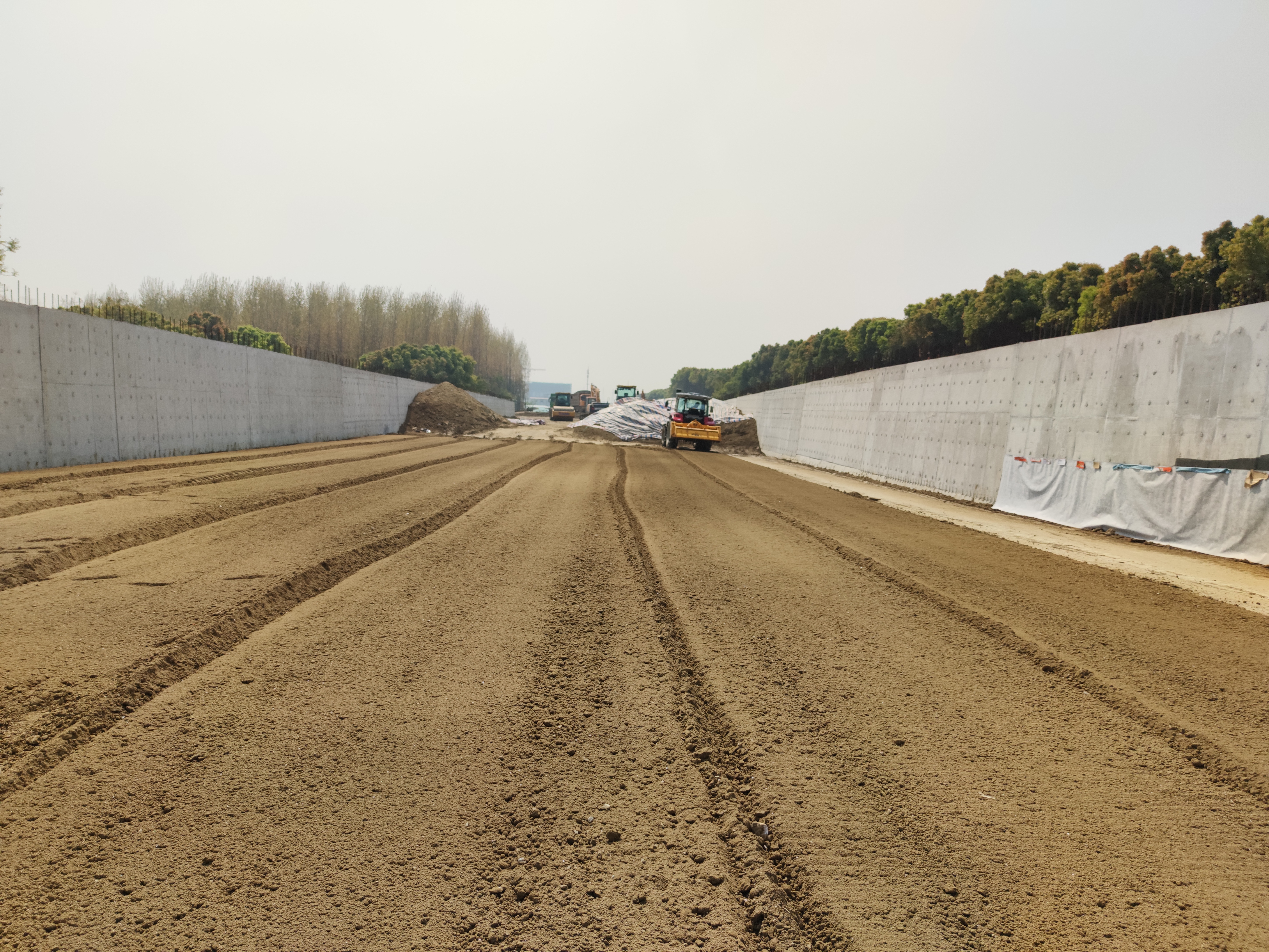 短短的5公里左右的路程,共有13座跨线桥、通道及地面桥涵。施工方克服了桥梁和道路施工的交叉影响。目前工程已经完成60%左右。工程预计2020年7月全线贯通。