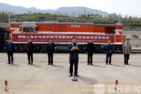 4月14 日上午,捐赠上合组织秘书处新冠肺炎防疫物资发车仪式在连云港中哈物流合作基地举行。