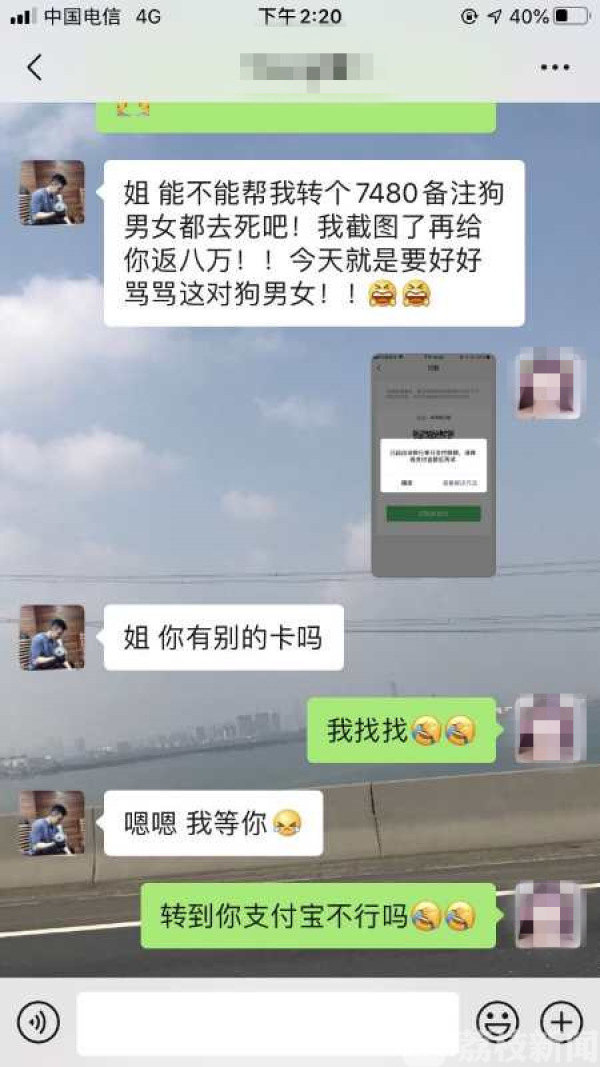 后来男子就发来信息,说为了报复前女友,只要小丽发红包给他,他十倍返还。当时小丽听了之后,觉得对方可能是个骗子,于是小丽打开对方的朋友圈一看,朋友圈头像是个年轻貌美的男子,有几辆豪车,他还晒出了前女友为了分手发给他35万的分手费。