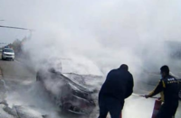 到达现场,民警发现出事的轿车停在主干道上,车中没人,引擎盖下方窜出了滚滚浓烟,且伴有噼里啪啦的爆炸声和刺鼻的胶皮糊味,周边有很多车辆和围观群众。