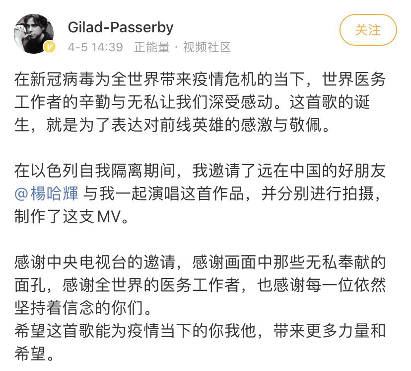 吉拉德在微博上介绍《在你身边》@Gilad-Passerby