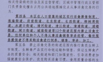 到农贸市场买一只活鸡活鸭,现挑现杀,对于一些市民来说新鲜又放心。不过,在江苏淮安,这样的购买方式将迎来改变。为规范禽类交易行为,保障公共卫生安全,日前,淮安市清江浦区出台《淮安市清江浦区禽类交易管理规定》,在人口密集的12个街道范围内禁止活禽交易和宰杀,全面实行禽类生鲜上市。