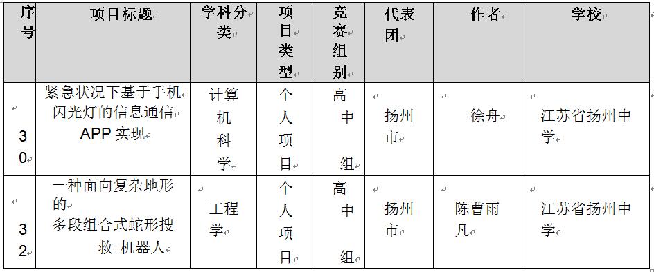 日前,第31届江苏省青少年科技创新大赛终评工作完成。在拟获得一等奖的项目中,评委会综合考察各参赛项目的科学性、创新性、真实性及竞争力等因素,按1:3的比例遴选出各组别的候选项目名单,扬州中学徐舟、陈曹雨凡两位同学入围2020年全国青少年科技创新大赛候选项目名单。