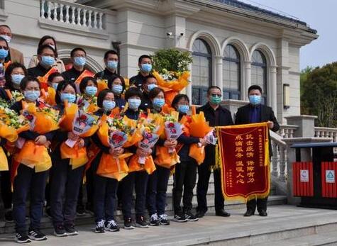 下午2点,六合区卫健委、六合区人民医院领导到现场迎接38名白衣天使回家,向他们献上鲜花,感谢他们圆满完成了各项救援任务平安归来。队员们坐上大巴车,掩饰不住内心的兴奋:“好激动啊!这次是真的可以回家了!”在人民医院大门口,他们的亲人、爱人、朋友、同事都在等待他们回来。当大巴行驶到区人民医院大门口,等待已久的人群沸腾了,大家挥舞着鲜花,寻找着盼望已久的身影。