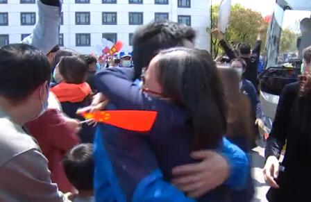 上午十点多,常熟援湖北医务人员乘坐的返程大巴车驶进了常熟会议中心 。李勤走下大巴车,一眼就看到了早早守候在人群里的丈夫,冲上去与他紧紧相拥。