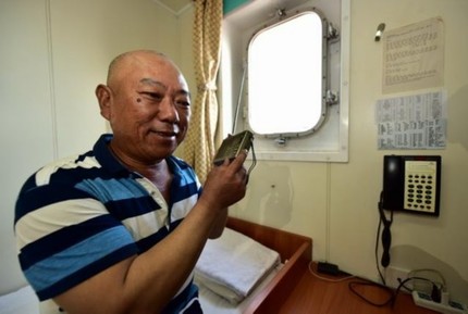 长期漂泊在海上的海员容易出现心理问题。图为收到陆地上的信号后,一位老海员的脸上露出了笑容。摄影/章轲