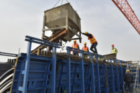 据悉,4月13日下午,宿迁市上海路(高铁站连接线)改造二期工程项目部组织召开首件安全技术交底会。混凝土浇筑前,市高铁公司工程技术负责人、总监办、检测单位及施工单位对现场施工人员进行了详细技术交底和现场指导,明确分工,责任到人,同时安排人员在拌和站驻点确保混凝土供应,管理人员跟车运输,全面排查龙门吊、振捣器、振捣棒、临时用电、喷淋等,确保首片预制箱梁顺利浇筑。为确保混凝土施工质量,技术人员优化设计方案,对大体积混凝土水化热进行了理论分析和模拟计算,现场布置喷淋养护、附着式振捣器配合振捣棒等措施,确保浇筑高质量。