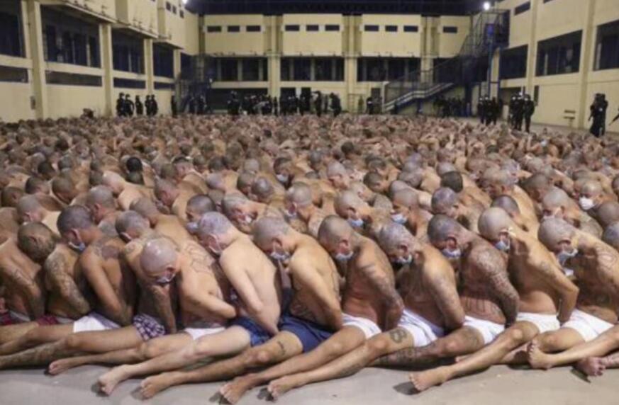 据英国《每日邮报》26日报道,4月25日,在萨尔瓦多总统纳伊布·布克莱(Nayib Bukele)下令,对包含黑帮成员的监狱进行24小时封锁之后,萨尔瓦多伊萨尔科监狱(Izalco)的囚犯被强制关押在一起,囚犯们一个挨一个地坐在地上。