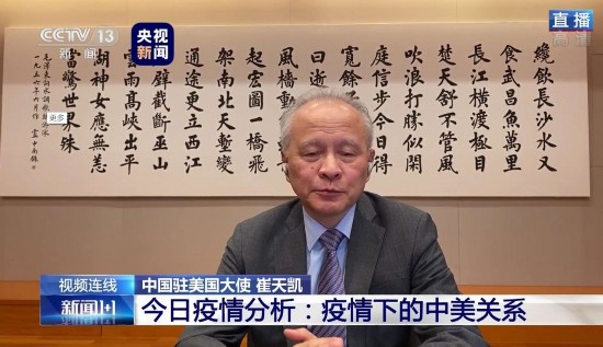 5月5日晚,央视《新闻1+1》节目中, 白岩松特邀中国驻美国大使崔天凯解读疫情下的中美关系。