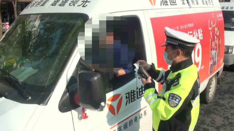 记者注意到,这三辆依维柯商务车车身被广告布包裹,由于车身广告没有在交管部门登记备案,现场民警按照《中华人民共和国道路交通安全法》对广告车所存在的交通违法行为进行处罚,责令驾驶员及时整改到位。