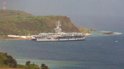 △图为停在关岛的“罗斯福”号航母
