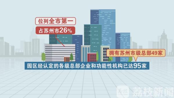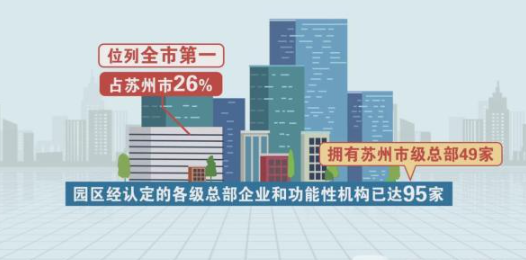 早在2003年园区就出台了总部政策,在一轮轮总部政策支持下,园区经认定的各级总部企业和功能性机构已达95家,其中,省级总部44家,总部数量占全省17%,位列全省第一;拥有苏州市级总部49家,占苏州市26%,位列全市第一。