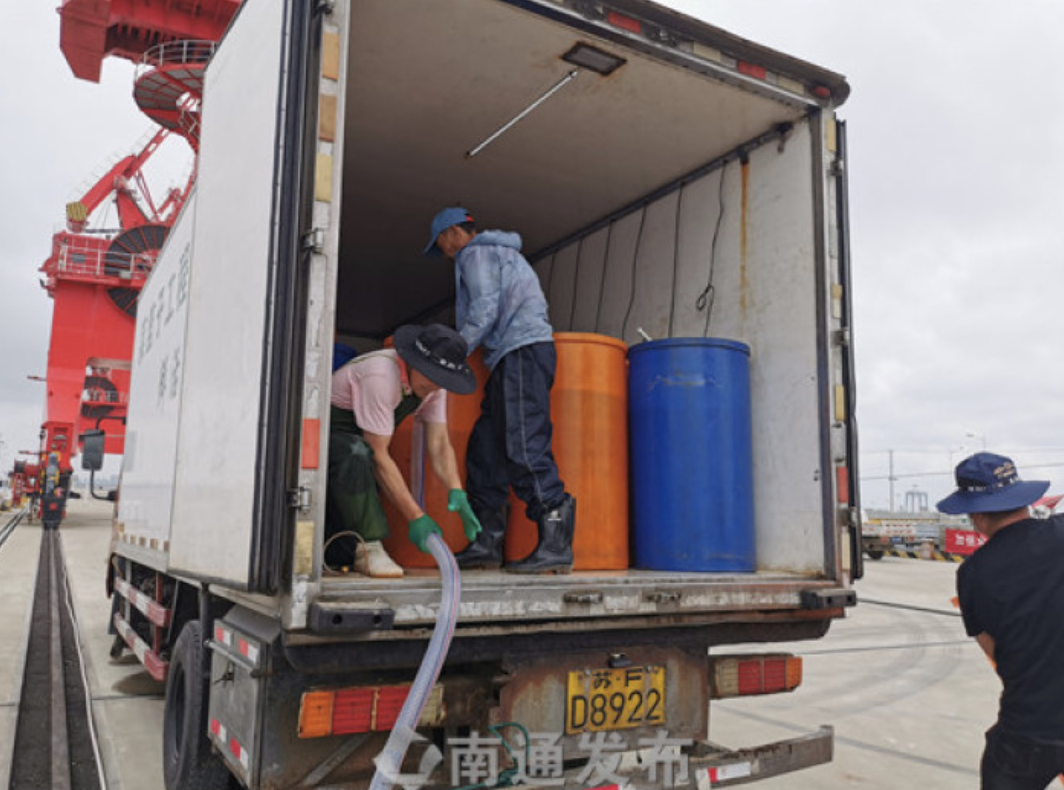 活动现场,江苏省海洋水产研究所、市农业农村局、通州湾示范区工作人员集聚码头,有序排队领取鱼苗。领到鱼苗的工作人员慢慢地将鱼苗通过事先准备好的滑道进行放流,小鱼们欢快跳跃着,沿着滑道游入海里。一旁的两台运输车内,黑鲷鱼被安置在水桶中,工作人员通过水泵将桶内的鱼苗抽入大海。