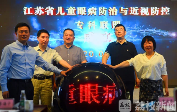 省卫生健康委医政处处长刘益兵、疾控处处长石健峰、妇幼处处长顾寿永、宣传处副处长汪蓓蕾、省疾控中心纪委书记周永林、省药具站站长陈国斌共同为“江苏省儿童眼病防治与近视防控专科联盟”成员单位代表授牌。