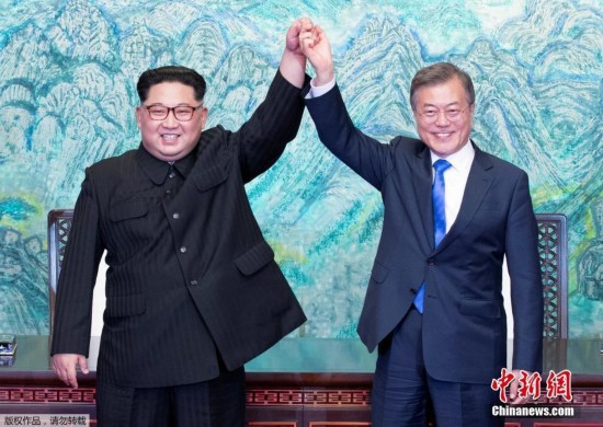 当地时间2018年4月27日下午,朝韩领导人在经过一天会谈后,共同签署《板门店宣言》。