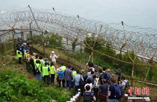 2019年6月,韩国首次向公众开放韩朝非军事区徒步游。图为游客正在体验徒步游,步道周围铁丝网环绕。中新社记者 曾鼐 摄