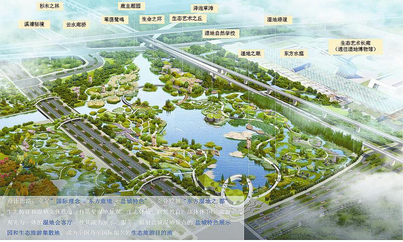 范公堤组团中的盐城综合客运枢纽西广场工程长途楼,已完成封顶,公交楼将于6月底完成封顶。当前盐城高铁站西广场项目共投入600余名工人、近40台大型设备,昼夜施工,确保工程按期完成,年底如期投入使用。与此同时,范公堤组团积极推进湿地公园和湿地博物馆规划建设工作,着力打造集保护展陈、公众教育、生态旅游集散等功能于一体的“城市生态综合体”,今年将先行实施大庆路以南的湿地公园、湿地博物馆、酒店和会议中心项目规划建设工作。湿地公园及湿地博物馆项目位于范公路以东、建军路以南、通榆河以西、青年路以北,占地约1273.5亩,包含湿地公园项目、湿地博物馆、酒店、会议中心、国际会展中心、国际人才公寓及商办等项目。