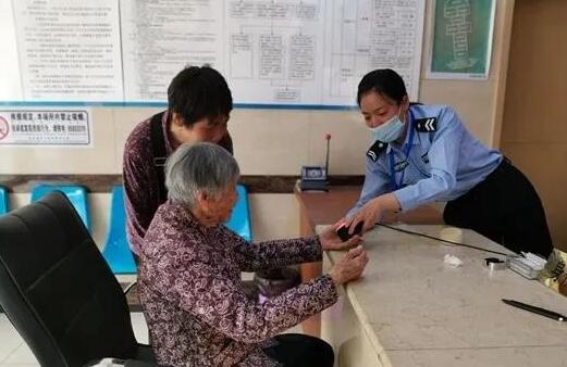望着眼前年迈的老人,段梦繁请她们先坐下休息一会,给她们端来两杯热茶,便开始快速查询老人的身份信息,确认无误后与同事何祖清商量,决定特事特办。于是她一边给姜洪花讲解户口政策,一边告诉她身份证“一站式”办理流程。何祖清则忙着给老人拍照采集人像,并叮嘱其要注意身体,做好安全防护。在采集人像时,因为老人面部特征变化较大,电脑显示识别率只有39%,远远低于60%的合格标准,这下可难坏了两个小姐妹。她们一起商量解决办法,试验了多种方法,最后通过调整光线的明暗角度,并小心翼翼地将老人搀扶到另一间室内继续拍摄……终于成功拍到了一张合格照片。大家很高兴,以为可以顺利办理下去了,可谁知,因为老人耳鸣听不见,且不知道配合,采集老人指纹信息时再次遇到了困难。何祖清就半趴在服务台上握住老人的手轻轻转动,仔细校对……经过半个小时的紧张工作,终于完成了信息采集,两个小姐妹长长舒了一口气,露出了开心的笑容。“你们的服务态度真好,太感谢你们了。本来我以为这里不能办理的,只是带着我妈妈来试试看的,没想到居然办成了。” 姜洪花女士真诚地说。