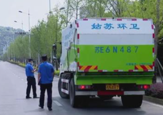 宝带西路是通往七子山垃圾焚烧填埋场的必经之路。近日,苏州高新区横塘城管中队在这里设置关卡,对来往环卫车辆进行严格检查。检查中,就发现了几辆粗心大意的收运车。