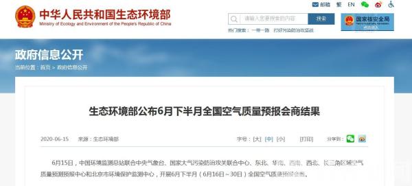 我苏网讯 生态环境部消息,日前,中国环境监测总站联合中央气象台、国家大气污染防治攻关联合中心、东北、华南、西南、西北、长三角区域空气质量预测预报中心和北京市环境保护监测中心,开展6月下半月(6月16日~30日)全国空气质量预报会商。