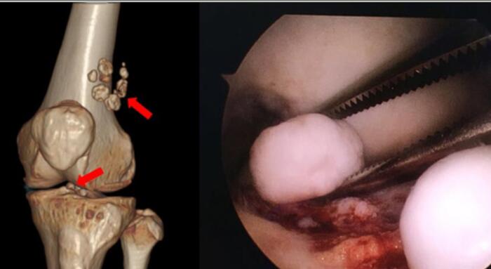 进入2020年后,常州57岁的缪女士就很少出门了。一方面是新冠肺炎疫情防控需要,另一方面缪女士的左膝这半年来酸胀不适,也就不想出门走动。没想到进入黄梅天后,缪女士的左膝疼痛加重,一动就“咔咔”作响,而且经常感到关节被卡住一般,严重时甚至无法行走。辗转几家医院后来到常州市第三人民医院骨科就诊,接诊的张亮医生拿过缪女士的X光片,一眼就找到了困扰她膝关节的罪魁祸首——“关节鼠”。