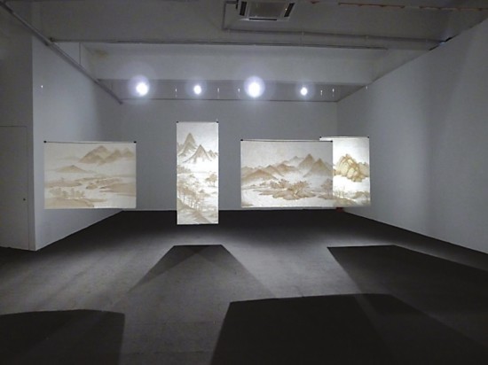 在“一明一暗”的阴阳世界中,相同的东西得到不同的转换。《一纸云山》是她最早成型的光艺术作品,四幅云山作品在被灯光照亮时,泛着淡淡的白光,悬置在简约空旷的展厅,远远望去就像着墨极浅的水墨山水,蒙上一层淡淡的迷雾。