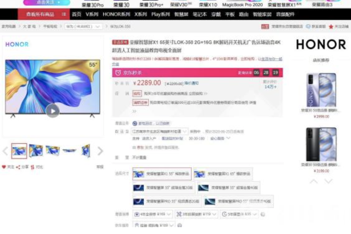 某电商平台上的这款刚入市不久的智能电视,在这次618购物节斩获京东平台电视单品累计销量和成交额的第一名,六月一日零点刚开卖2分30秒销量就超过了万台。记者留意到, 这款电视能够秒速开关机,没有开机广告,并且具有无频闪、低蓝光认证等。根据京东官方数据,6月1日至6月14日,此类定制产品销量同比增长622%。