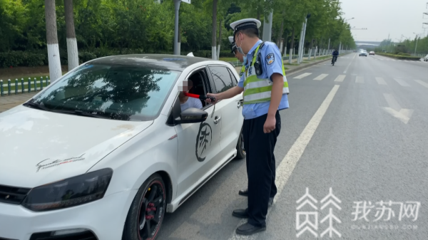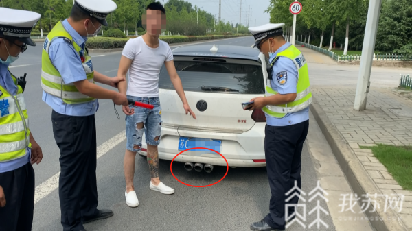 我苏网讯 6月25日中午2时许,徐州交警支队东店子卡口民警在徐贾快速通道和徐海路口附近执勤时,发现一辆白色轿车伴随着异常的轰鸣声自西向东驶来,因其车辆涉嫌非法改装“响排”,民警遂拦停该车对其进行检查。