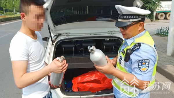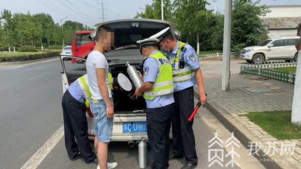 当车辆发动后,民警听到车辆排气管发出异常的轰鸣声,驾驶员坦言这排气管是其花2000元找人改装的,目的就是为了听起来比较拉风。民警随后又对其车辆后备厢例行检查,结果在其车辆后备厢内竟然发现两罐“笑气”瓶,驾驶员张某交待,这两罐“笑气”是其朋友在一个月前借车辆时放在车上的,自己并没有吸食。