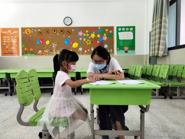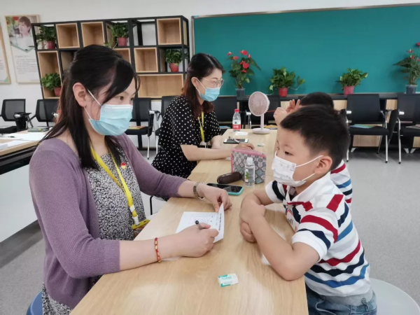 还有南京市雨花外国语小学请准一年级新生来个自我介绍,或是问简单的生活问题。南京市五老村小学让小朋友跳绳、拍球,拼个七巧板。总体来看,大部分学校都是比较简单的体育、唱歌、问答等互动,趣味十足。