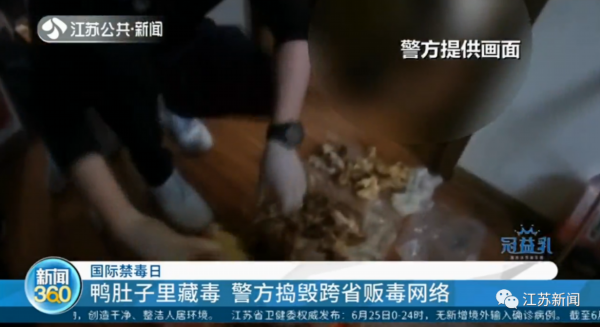 但当他们将鸡鸭拆解后,真相随之显现:扒开鸭肚,一个塑料袋出现,里面装着的,是冰毒!经过现场称重,这包冰毒重24.6克。