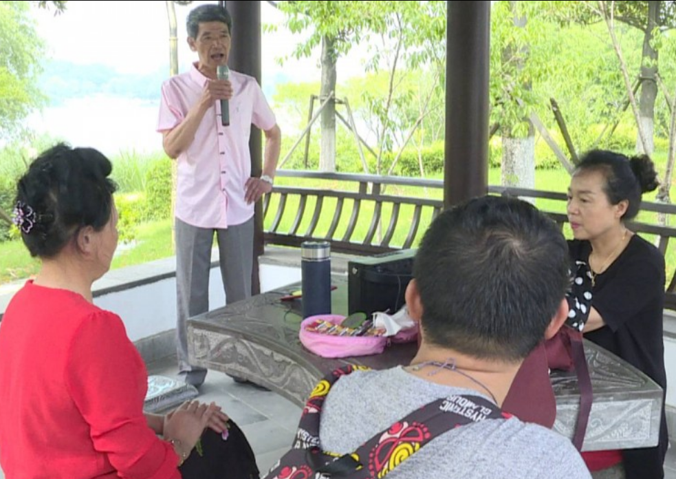 市民顾宜慎唱戏已经有六七个年头了,是个十足的“京剧迷”,退休之后,每逢节假日都会约上几个票友来到桃园景区,一起唱唱戏、赏赏景。
