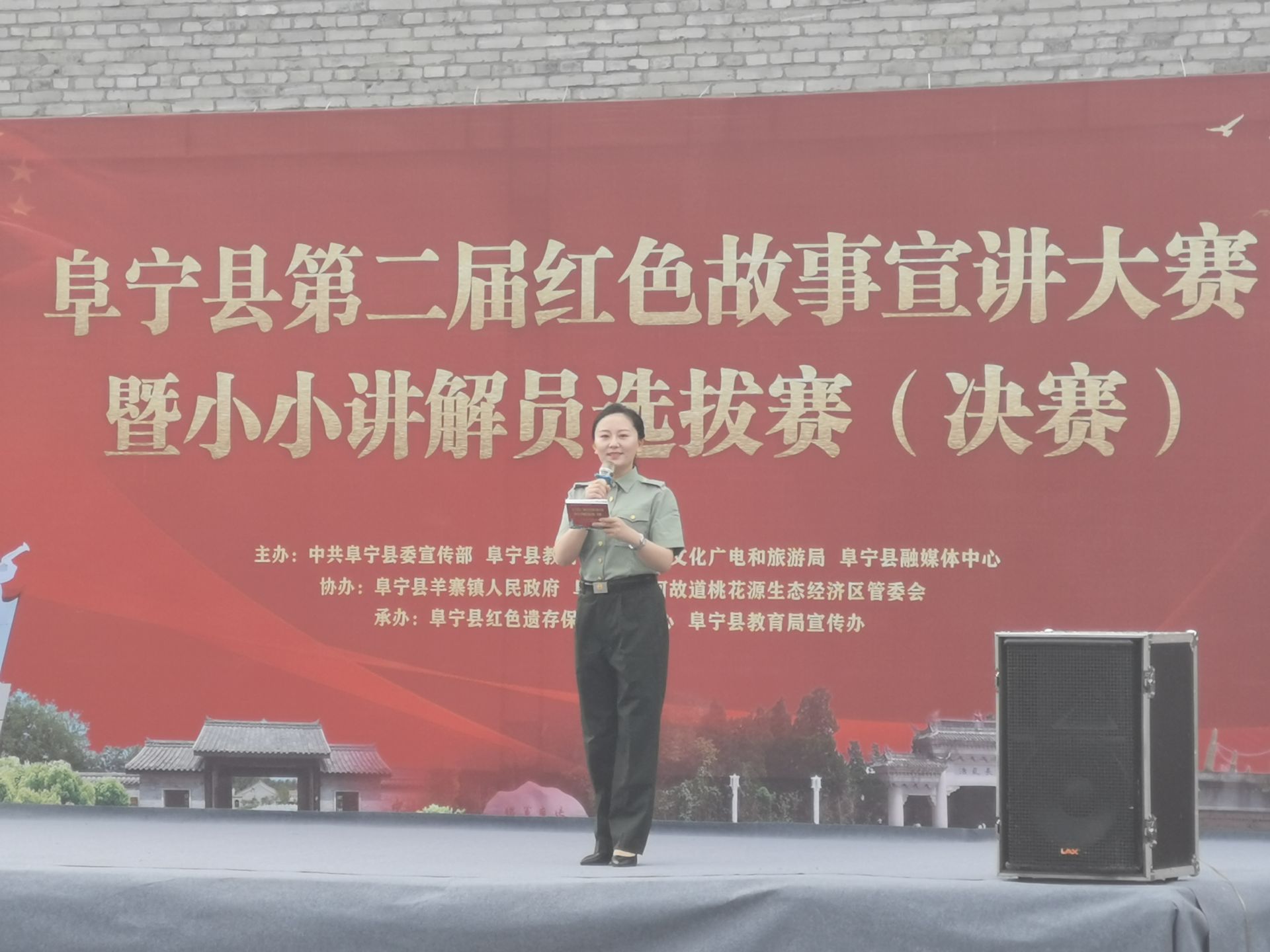 “新四军盐阜区抗日阵亡将士纪念塔,座落在阜宁县芦蒲镇芦蒲村。2019年,新四军盐阜区抗日阵亡将士纪念塔被确定为国家级文物保护单位。1943年6月15日,纪念塔开工。参加建塔的义务劳动群众近万人,他们帮助修塔工人挑水、推土、递砖、和泥,不吃公家一粒粮,所有建塔材料都是群众肩担车推运来的……”小小讲解员韩薇稚嫩的童音,如数家珍般的讲解,彻底征服了每一个评委。