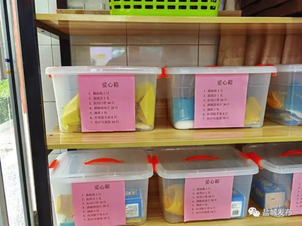 市一中考点配备的爱心箱,箱中为防疫物资。
