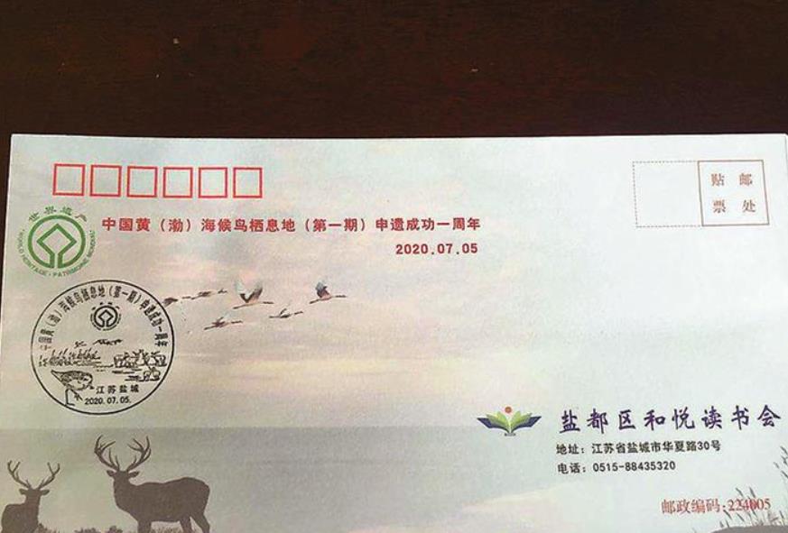 为纪念并展现盐城黄海湿地遗产的独特魅力,此次由盐都区图书馆开发的文创产品——中国黄(渤)海候鸟栖息地(第一期)申遗成功一周年纪念封,在图案设计上融入不少盐城元素,比如麋鹿、丹顶鹤以及在江苏盐城国家级珍禽自然保护区条子泥段,发现的极危物种——勺嘴鹬。