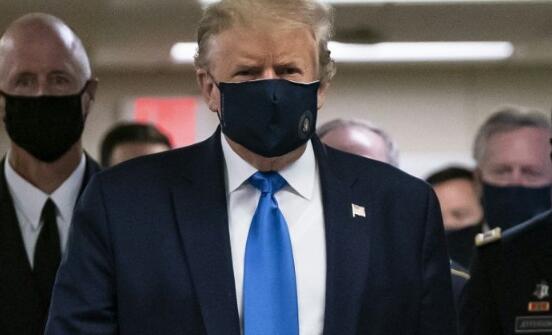 报道称,特朗普当访问了位于华盛顿郊外的沃尔特·里德军事医院,探望了受伤的退伍士兵和照顾新冠肺炎患者的医护人员。根据电视新闻镜头显示,特朗普在与受伤士兵会面时面戴黑色口罩。