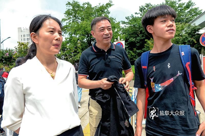 7月15日上午10:30,考生走出考点,微笑着向家人招手。 盐阜大众报报业集团全媒体记者 张一轩 摄