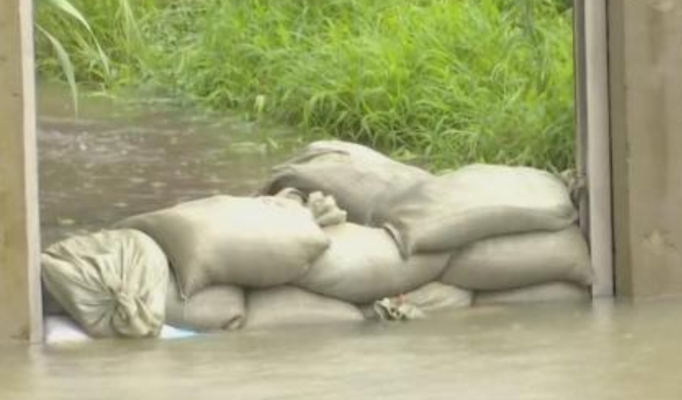 武进区前黄水利站副站长郑琪介绍:“我们现在安排了100多人的应急抢险队伍,在现场铺设应急麻袋沙包6000只,现在麻袋沙包铺设的高度有5.8米左右。”