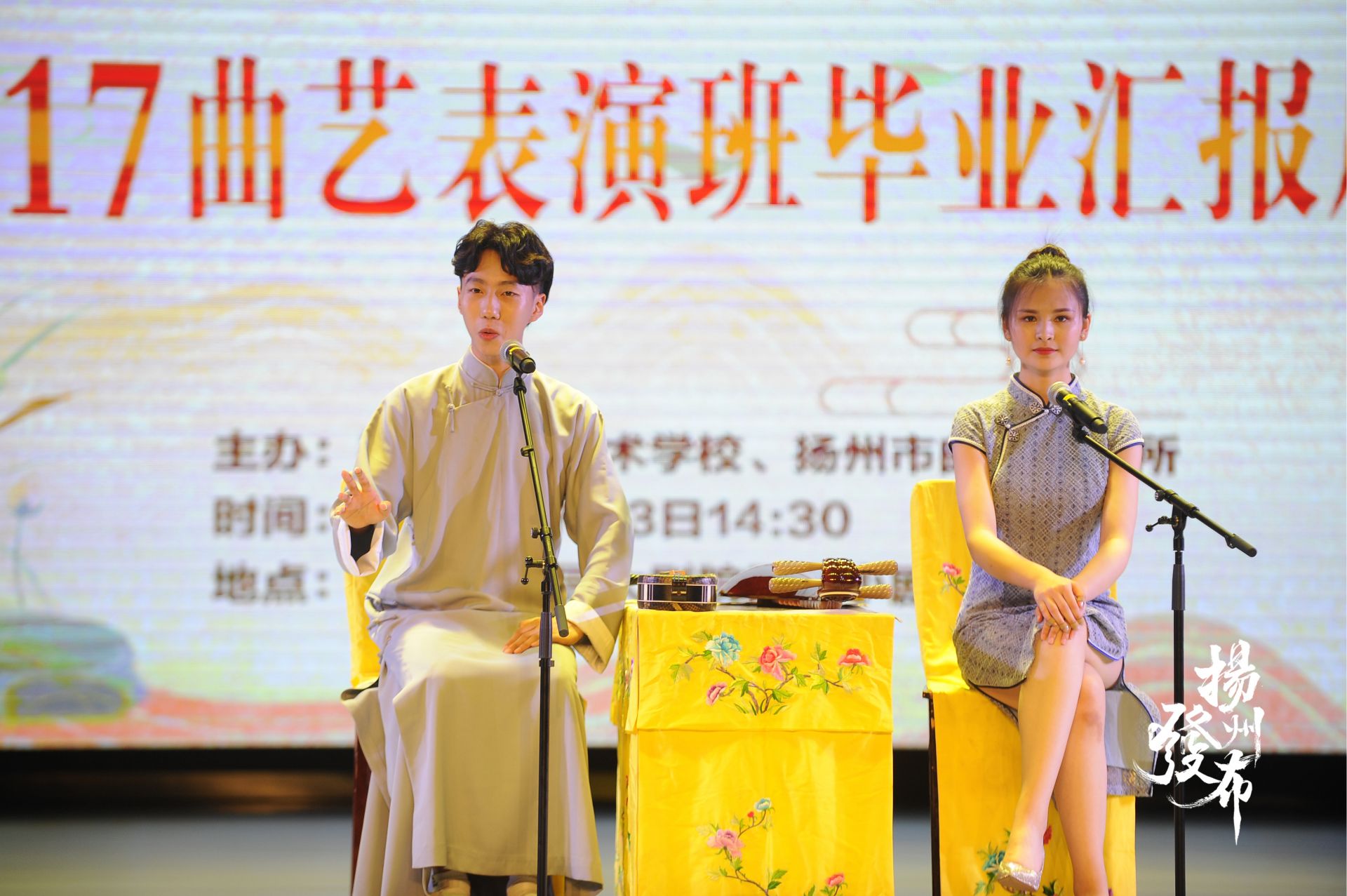 这是一场别开生面的汇报演出,扬州评话的抑扬顿挫,扬州弹词的婉转缠绵,扬州清曲的余韵悠扬,伴随着琵琶三弦的旋律,扬州文化艺术学校2017届曲艺表演班的24名学生,用一场精彩的曲艺表演,为三年的学习生涯划上一个逗号,对于年轻的他们而言,曲艺生涯其实才刚刚开始。